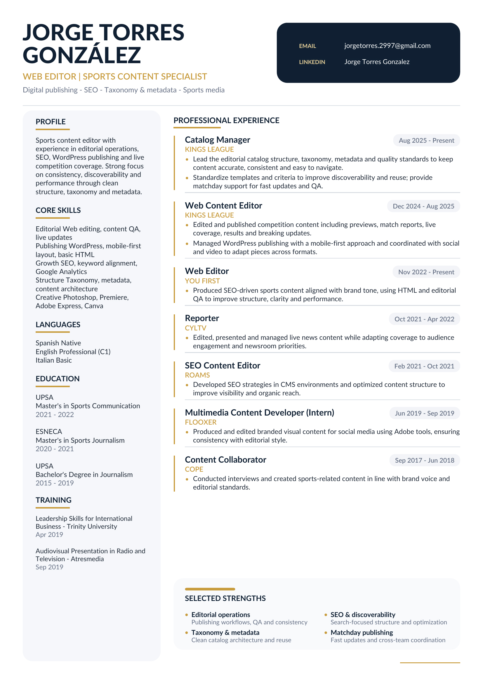 - Kings League · Editor de Contenidos Web (Dic 2024—Ago 2025)